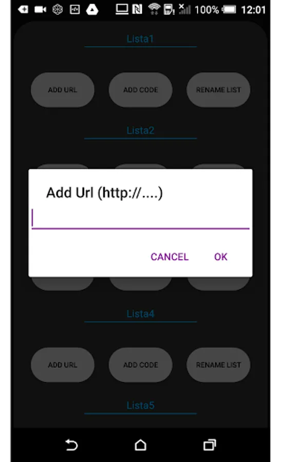 - select Add Url or Add Code and enter the data, select ok to confirm the entry
