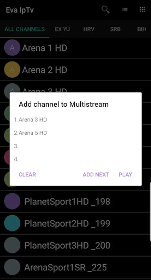 This application does not have built-in channels. You must have your own channel list to use the app.