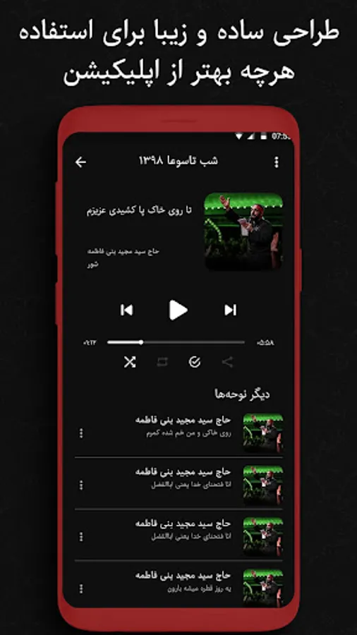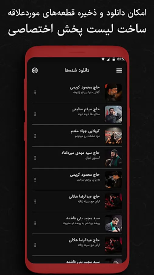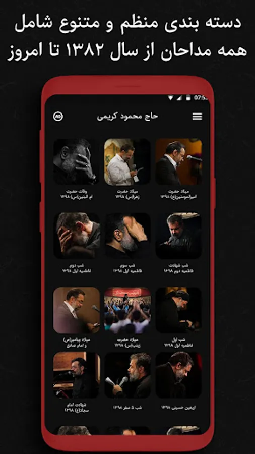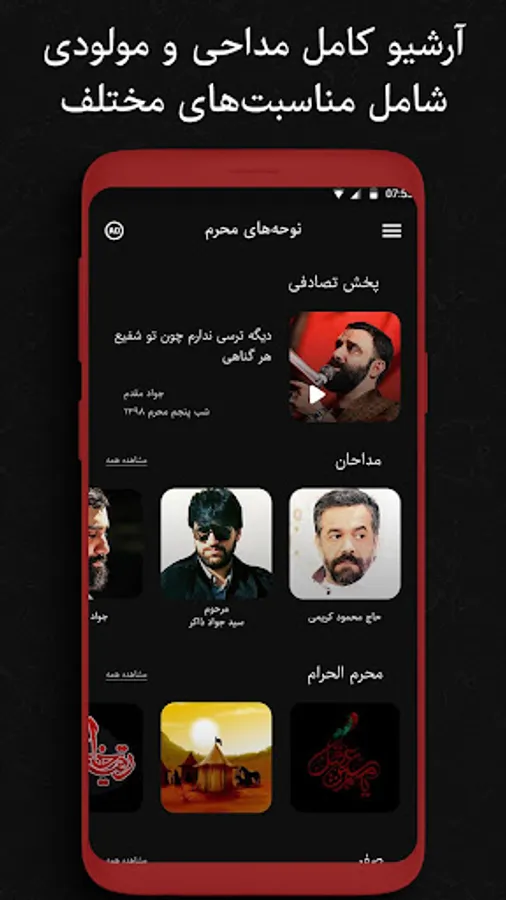 Muharram Zakirin mourning and eulogy application is a program that includes all kinds of eulogies performed by top eulogists. In this program, you can select your favorite eulogist based on the placed category and listen to the performed eulogies and receive the latest Muharram lamentations and eulogies on your phone every day.