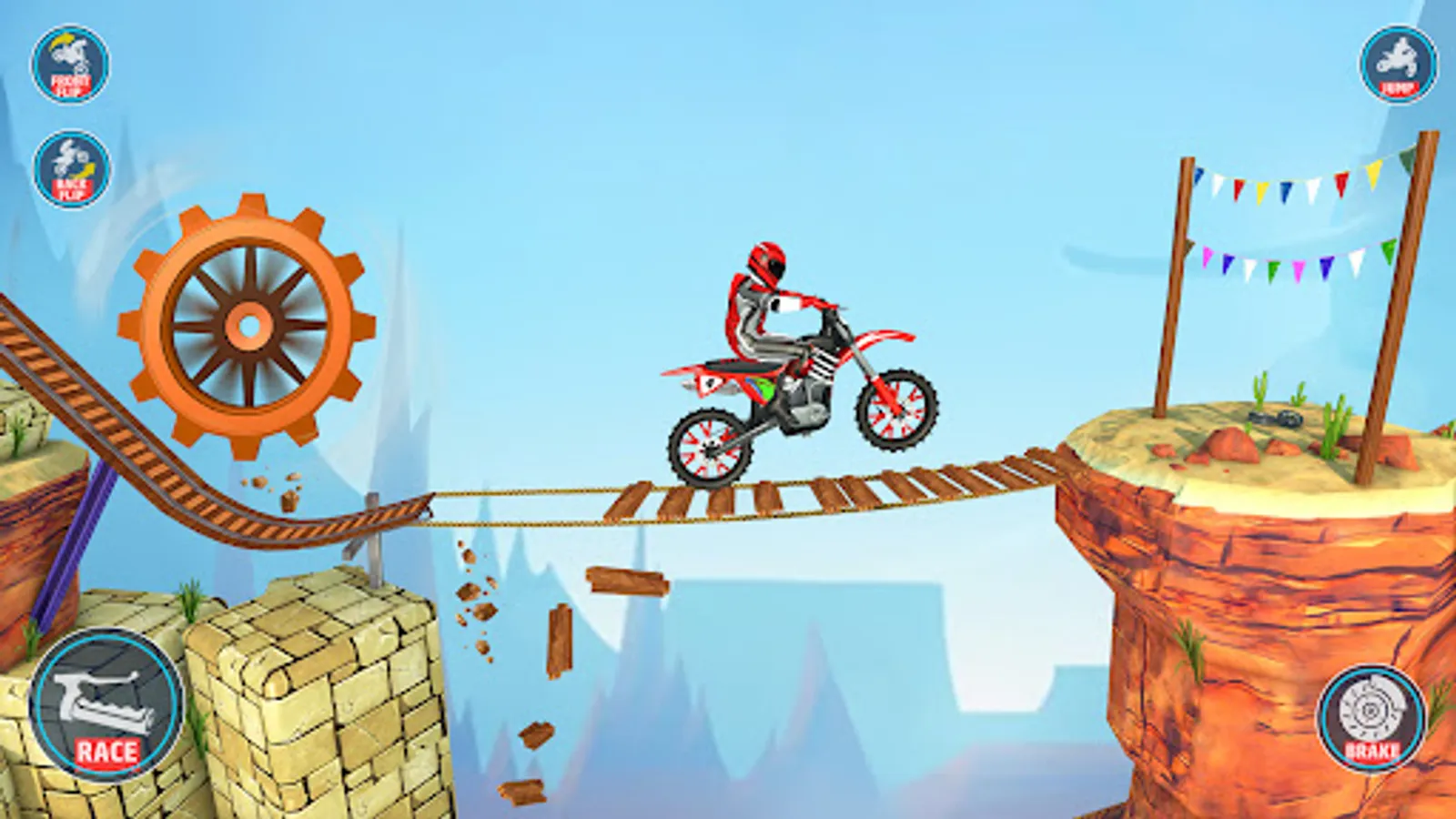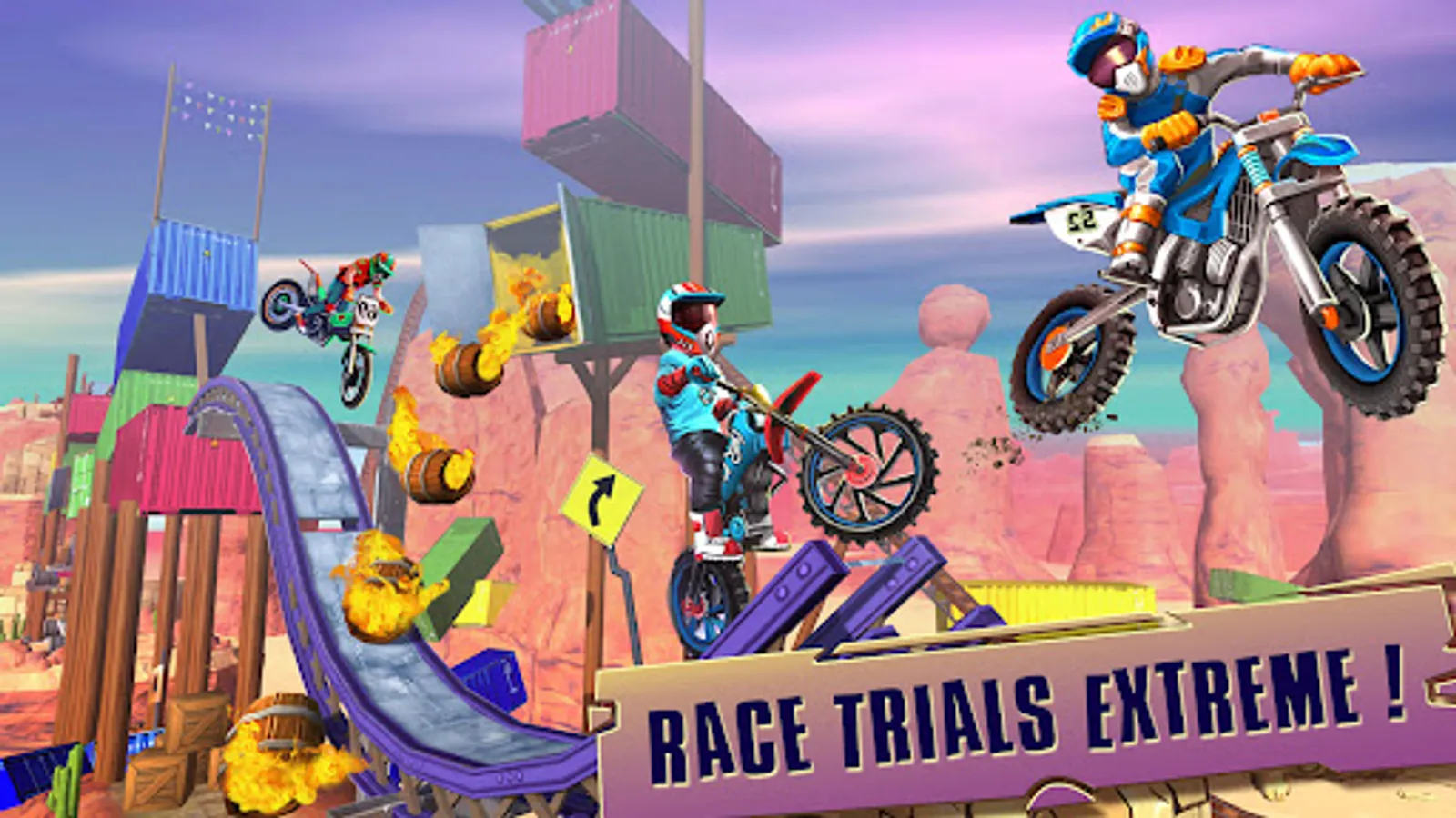 Trials bike racing games is not like any other dirt bike or bike racing games you’ve played before! Ride your motorcycle and trial bike on extremely addictive bike stunt racing tracks while you perform tricky wheelie, crazy flips, mid-air flips, crazy jumps and impossible bike stunts in trials bike stunt master bike racing games!