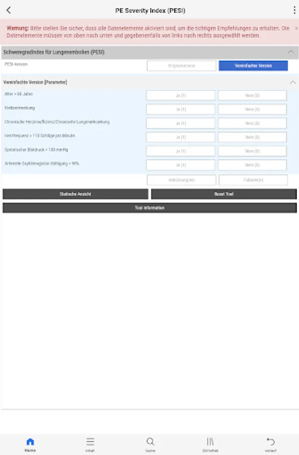 Diese Pneumo CDS – System zur Unterstützung klinischer Entscheidungen dient nicht der Patientenberatung und darf keinesfalls als Ersatz für eine individuelle professionelle Beratung, Diagnose oder Behandlung durch einen Angehörigen der Gesundheitsberufe angesehen werden.