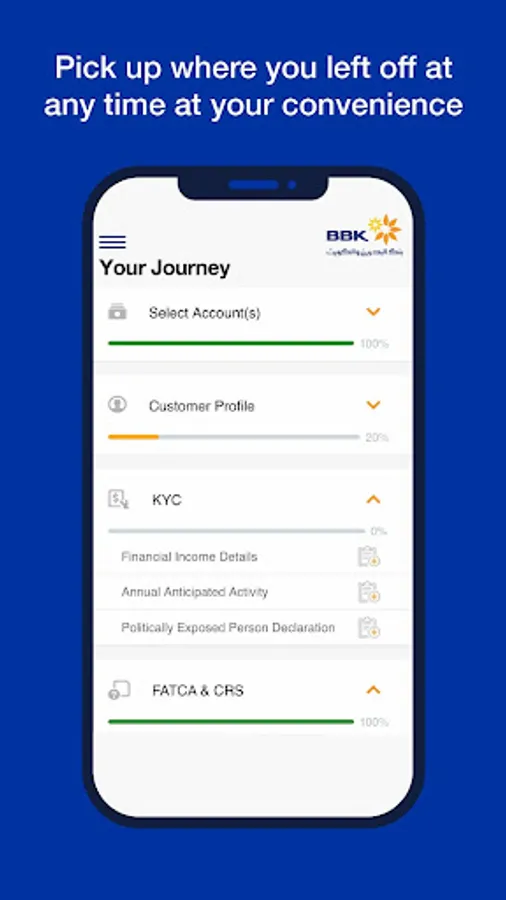 BBKPLUS Mobile Application allows you to open accounts conveniently and securely while on the go. It is available for BBK customers and non-BBK customers residing in the Kingdom of Bahrain.