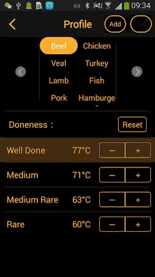 -Preset temperatures for and doneness for BEEF, LAMB, VEAL, HAMBURGER, PORK, TURKEY, CHICKEN & FISH.