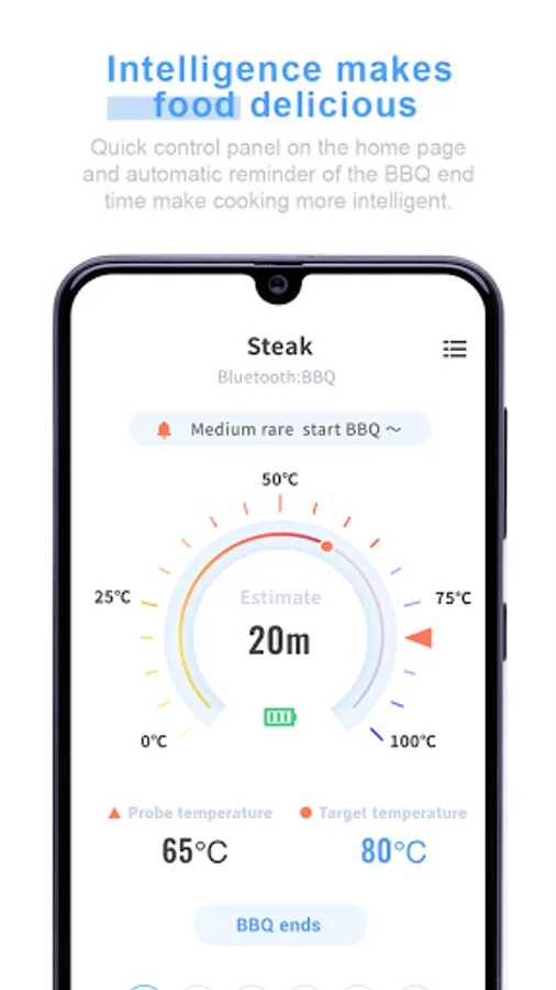 1.Quick control panel on the home page and automatic reminder of the BBQ end time make cooking more intelligent.
