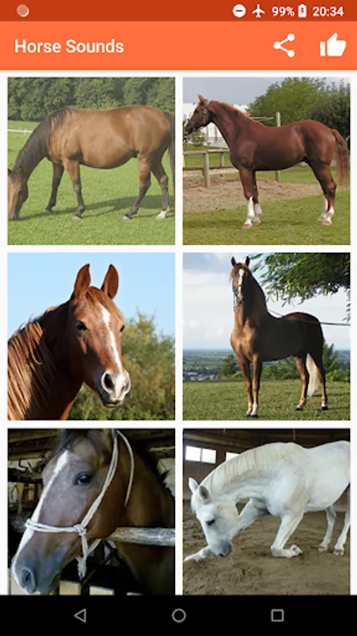 This application 'Horse Sounds' is an application which enjoys the cry of various animals.