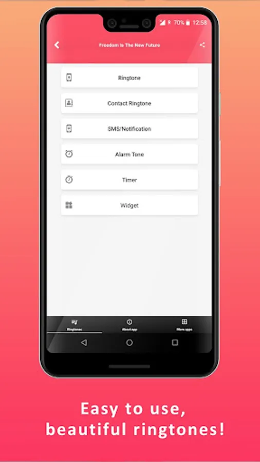 With Phone Ringtones 2023, you'll never miss an important call or notification again. Phone Ringtones 2023 app includes a wide range of notification sounds that you can use to stay on top of your incoming messages and alerts. From cell phone ringtones to mobile phone alarms, Phone Ringtones 2023 has everything you need to stay connected and organized.