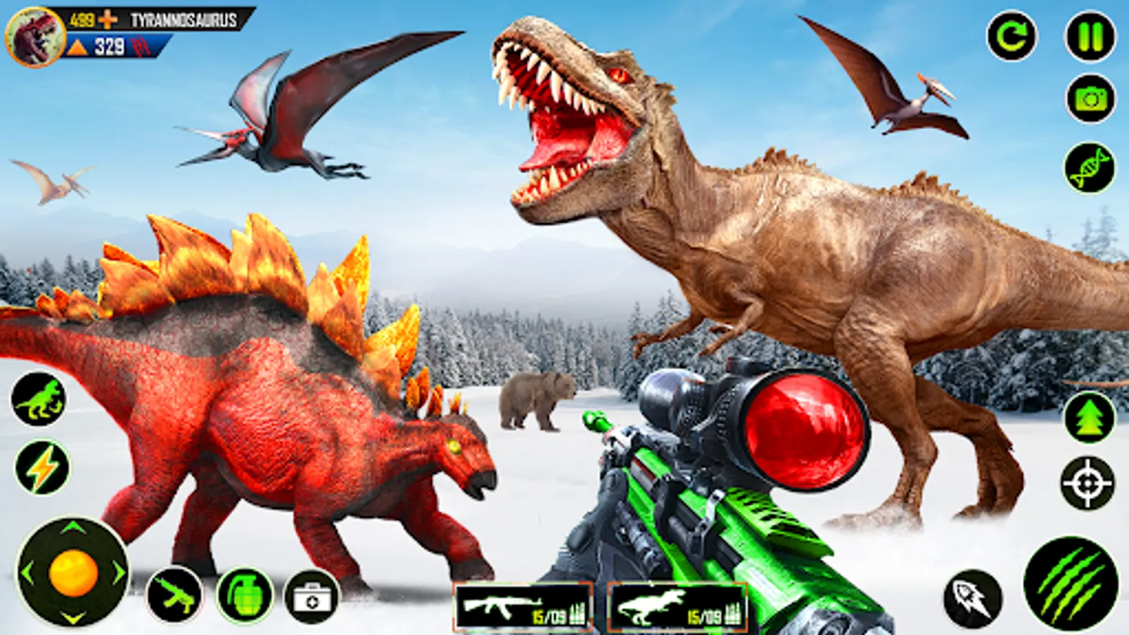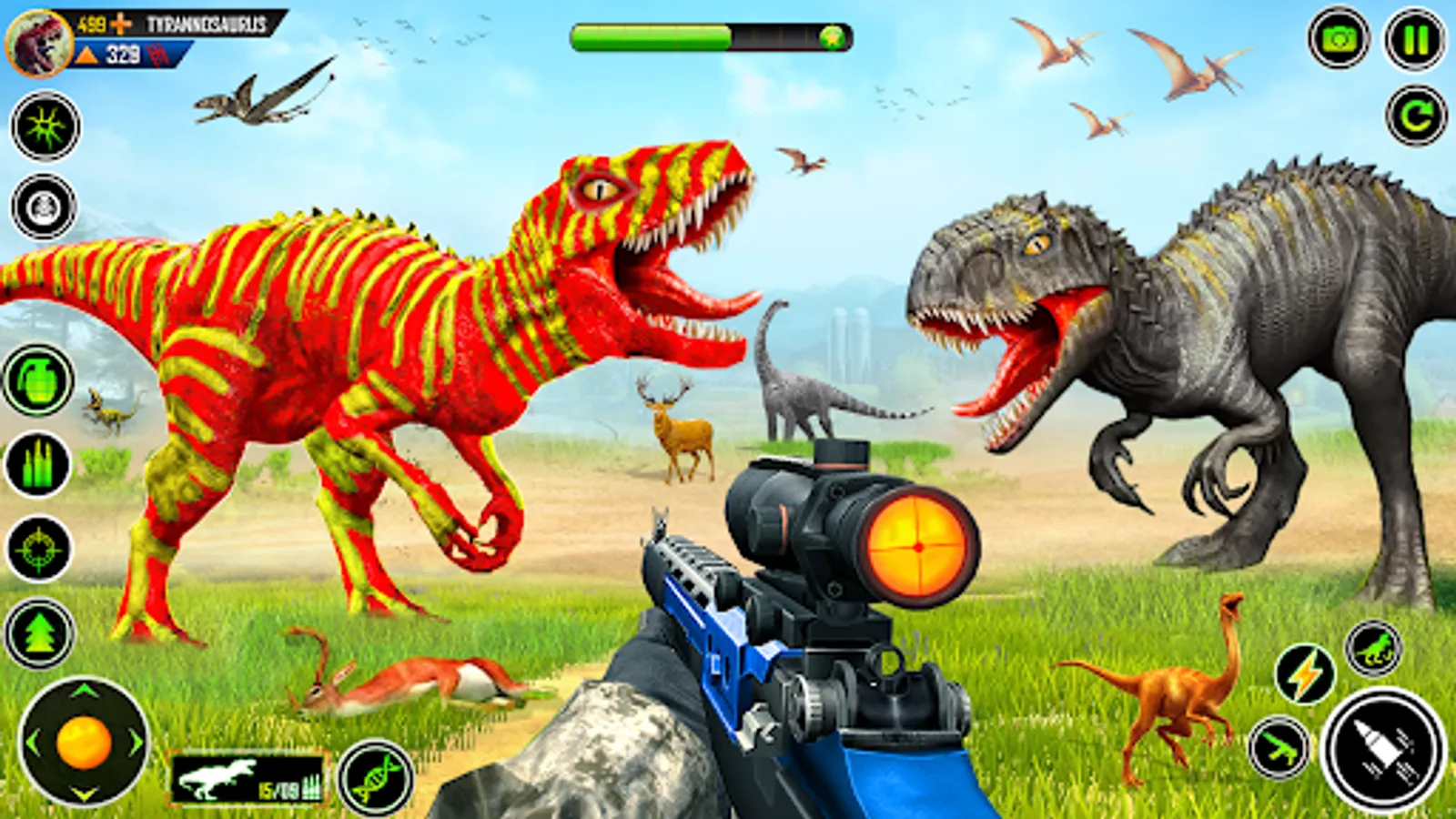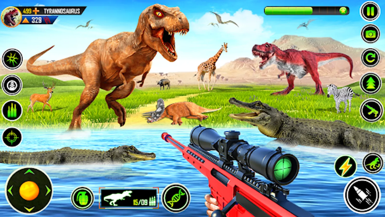 This fps dinosaur shooting game requires you to move in the safari jungle hunting to find non-stop action, wild bear hunting, running deer hunting, roaring lion hunting, crouching tiger hunting, attacking t-rex hunting, large family of jurassic dinosaur shooting. Love the hunting experience in different environments of safari, jungle hunting, dinosaur shooting in snow, mountains, rivers and many more to hunt. T-rex games will scare you as the t-rex game uses the most deadly t-rex available in safari jungle hunting. Real dinosaur hunter 3D offers you a real dinosaur simulator, deadly t-rex simulator, t-rex vs dinosaur, lion simulator, tiger simulator, deer simulator, wild animal simulator. Run around the safari jungle game environment and find your dream dinosaur hunter inside you.