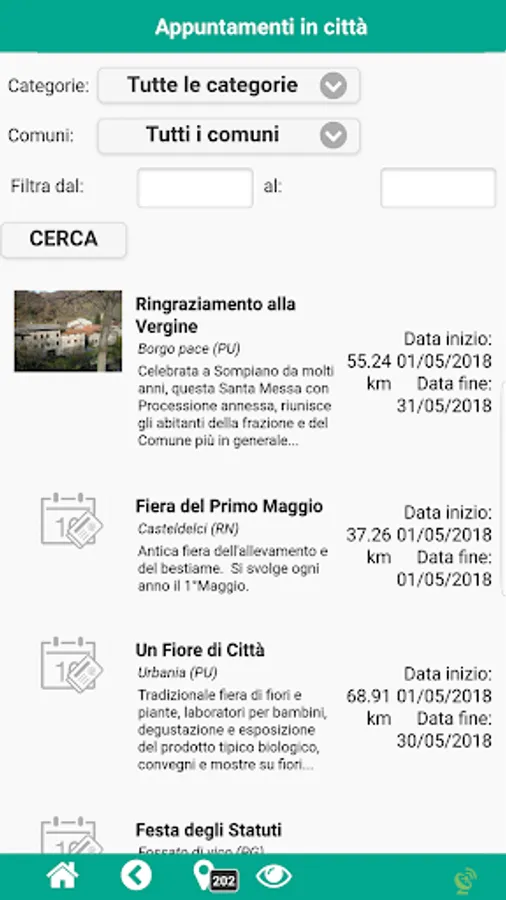 The App provides information about the municipalities, itineraries, points of interest, accommodation facilities and events of the territories involved in the project for the promotion and promotion of tourism: Alta Val Metauro, Upper Umbria, Catria and Nerone, Montefeltro, Romagna Forlivese, Rubicone and Sea, Valtiberina Tuscany, Valmarecchia.