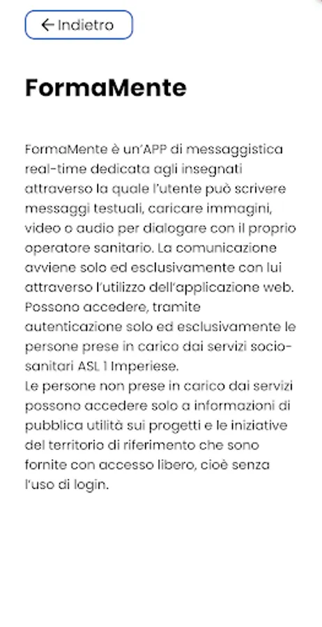 FormaMente is a real-time chat application dedicated to teachers through which users can write text messages, upload images, videos or audio to dialogue with their doctor. Communication takes place only and exclusively with a healthcare professional through the use of the web application.