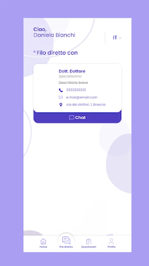 PersonalMente is a real-time chat application dedicated to women through which users can write text messages, upload images, videos or audio to dialogue with their doctor. Communication takes place only and exclusively with a healthcare professional through the use of the web application.