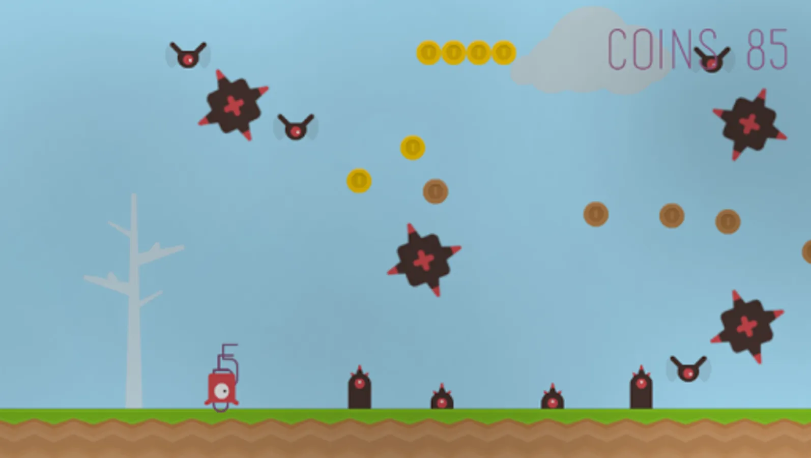 You are collecting gold by escaping the obstacles flying in the air or standing still.