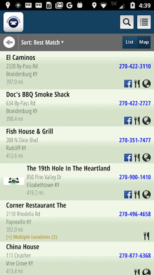 The Brandenburg Telephone Directory app will find businesses, get directions, click-to-call a business, download coupons, and find enhanced information on business profile pages by toggling between a voice-driven list-view and an advanced map view.