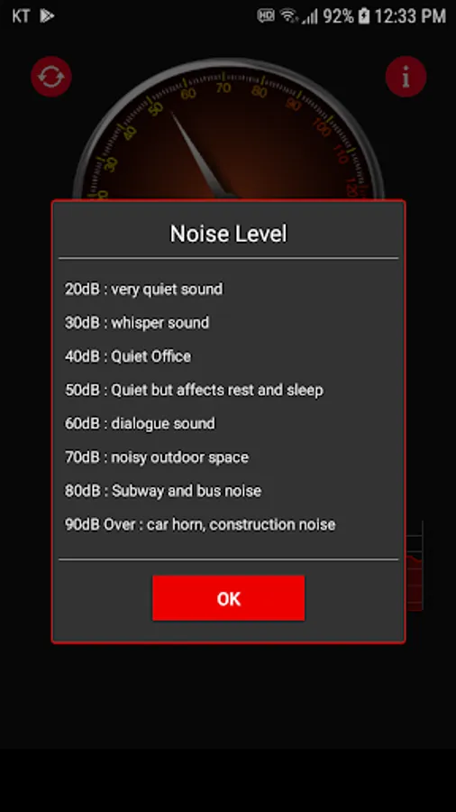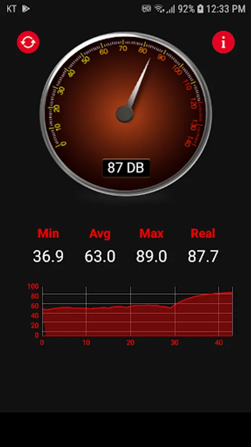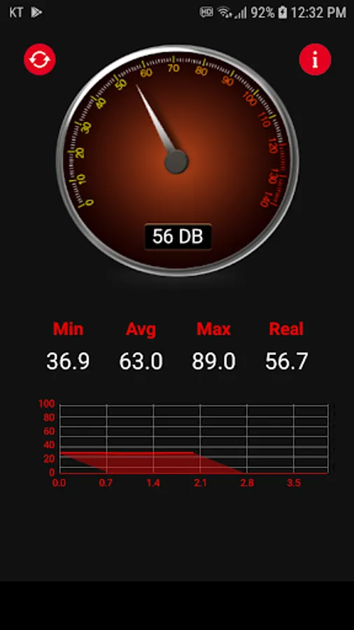 It also shows the decibel values in various forms, including minimum, maximum, and average.