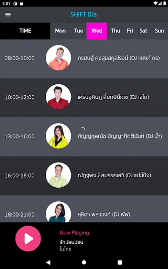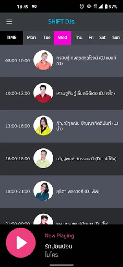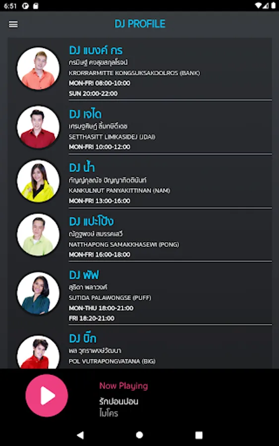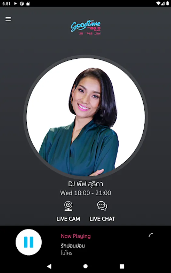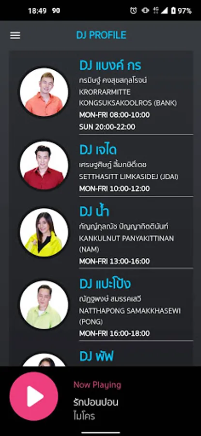 • DJ Goodtime Profile และ Shift Djs แสดงช่วงเวลาการจัดรายการแต่ละวัน