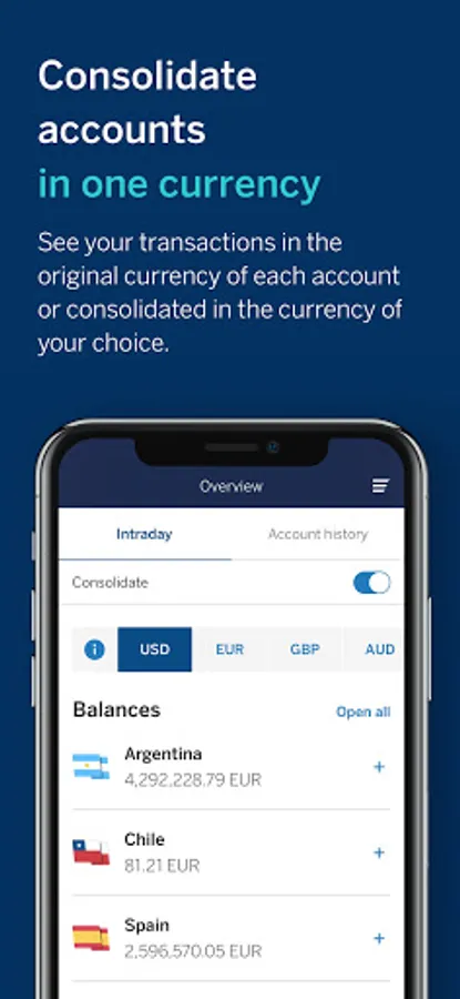 > You can view all your accounts in one currency at a glance, as well as consolidate balances.