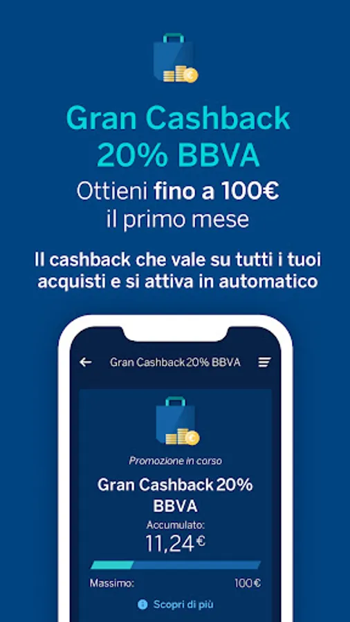 - Cashback 5% Shopping BBVA. In the following 3 months you can earn up to €30.