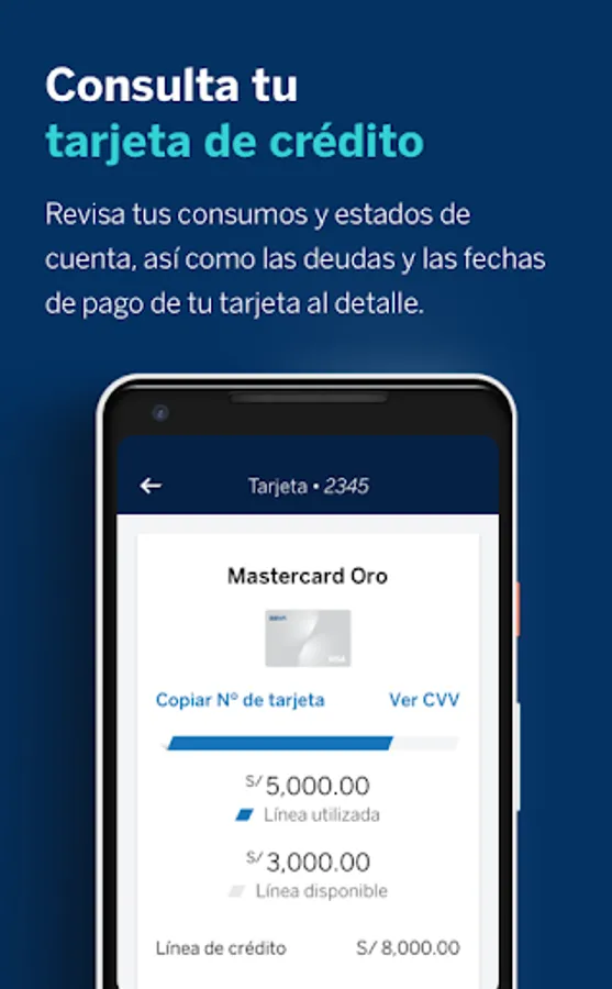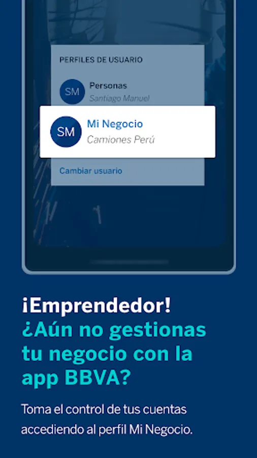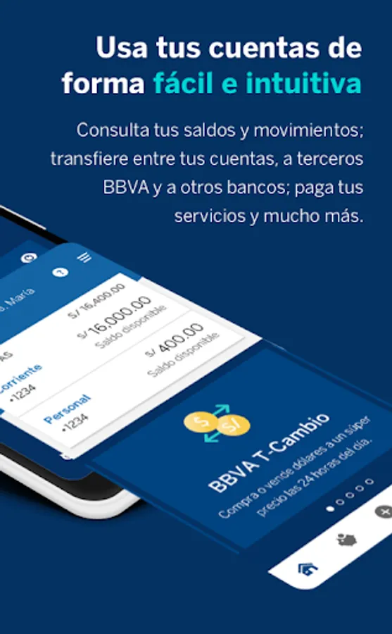 With BBVA Peru you will be able to consult all your accounts, cards and other products, carry out your operations when and where you want and separate your personal accounts from those of your business. Take the Bank on your cell phone! If you are not yet a BBVA customer, you can open your account from your cell phone and join our digital channels.