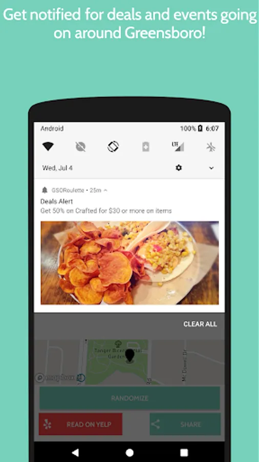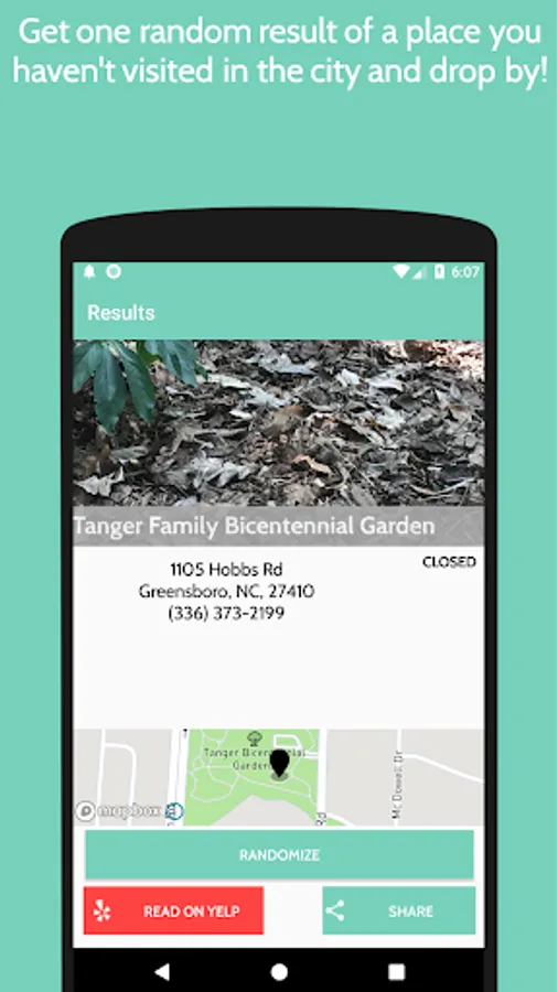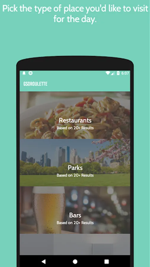 GSORoulette is a fun way to discover Greensboro! Simply select a category from the many avaliable and get directed to one new location that you may haven't visited yet in Greensboro and make a trip! So wether you're going out with friends on a Friday night, lunch with coworkers, or looking for a great trip to a new park with the family. GSORoulette will make your search simple and seamless.