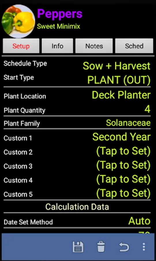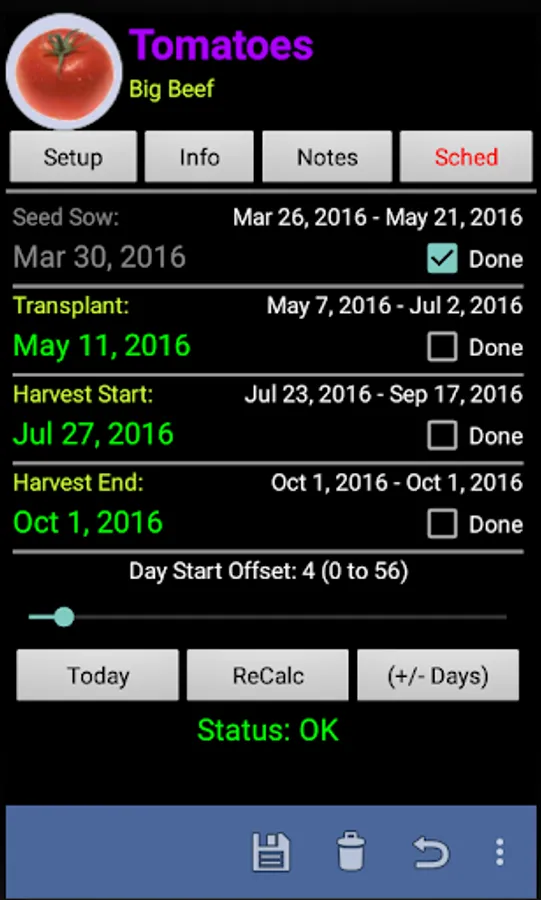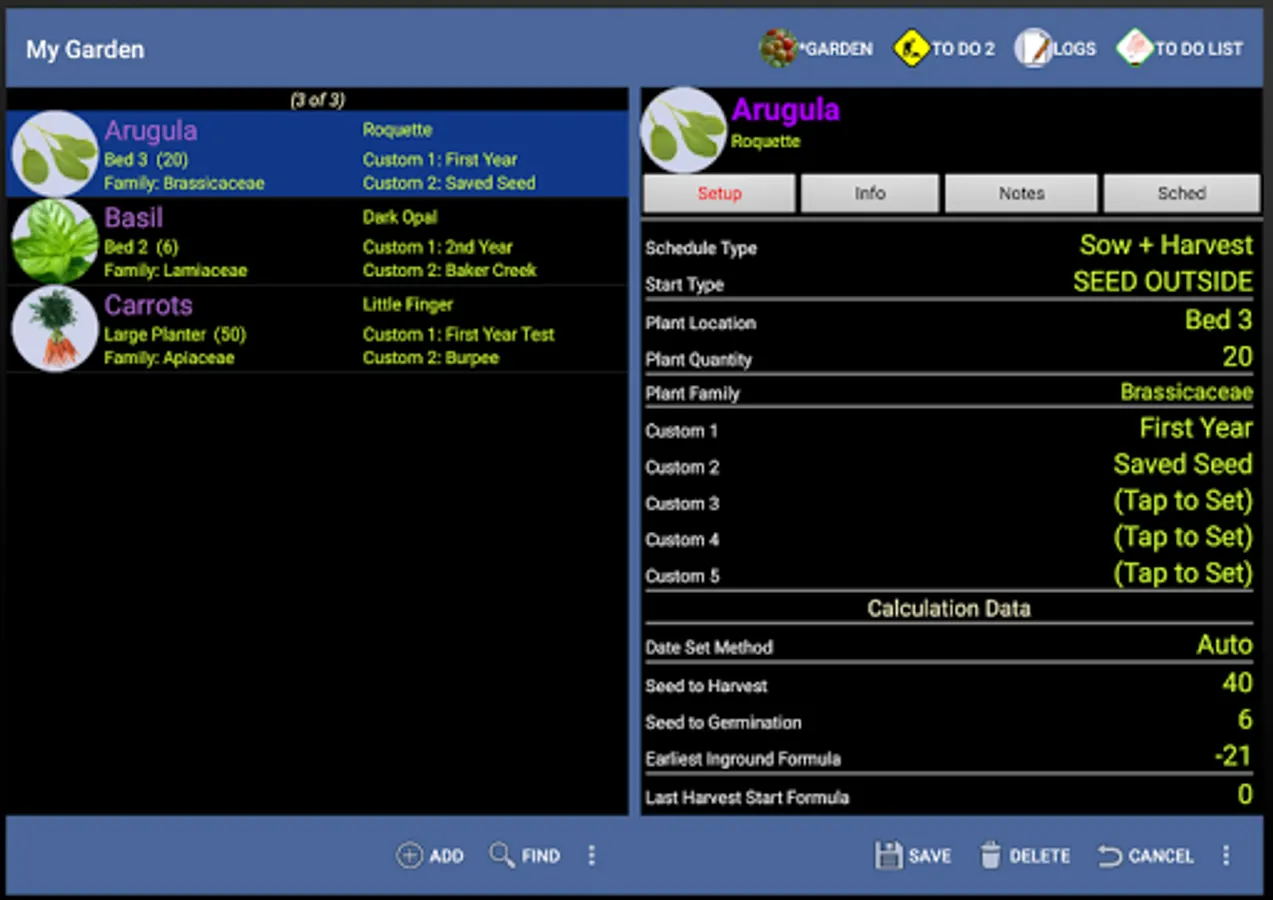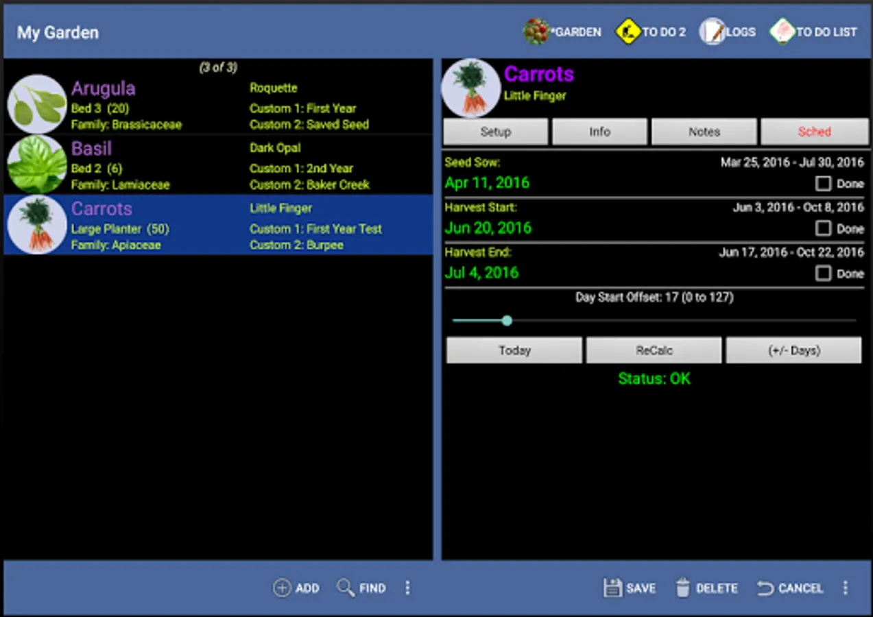 ✔ Complete control over date calculations for advanced users. (Useful for different varieties and conditions.) You can specify the days to maturity, for example, as different varieties can vary greatly, thus giving you a much more accurate calculation for harvest times.
