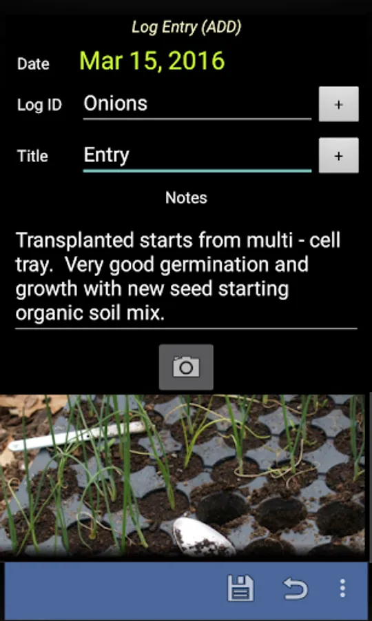 ✔ A place for your personal notes per crop to keep track of ideas and problems or log activities.