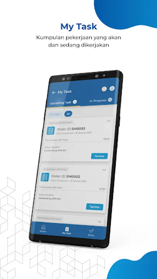 2. In Progress: To see the jobs being done by the user