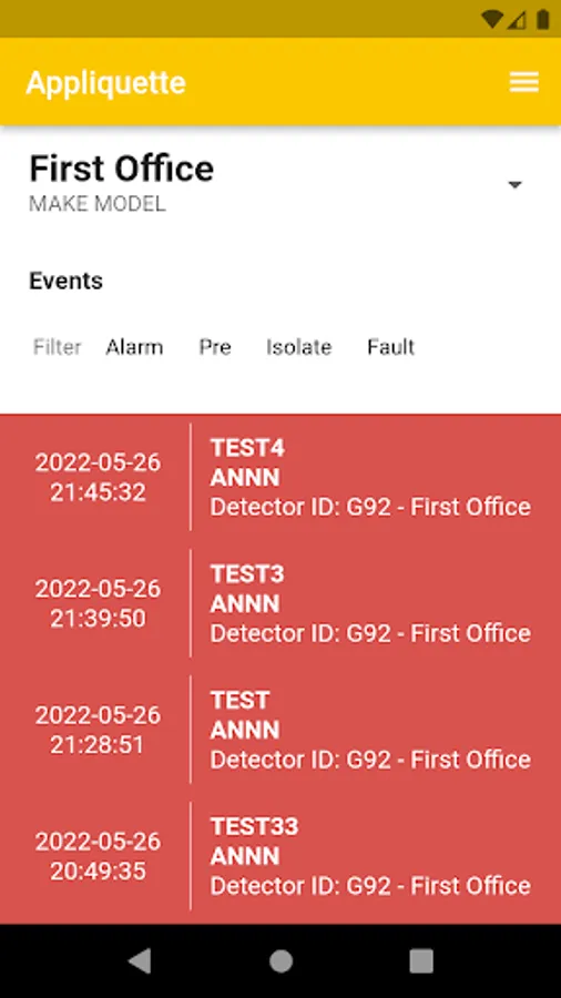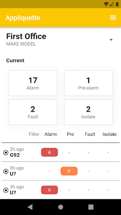 The Fire Respond application can be configured to discriminate between various Fire Panel notification conditions including Alarms, Pre Alarms, Faults and Isolates. A record of events is captured locally and off site to allow easy interpolation of reoccurring or troublesome alarm conditions.