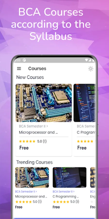 All BCA Notes & Courses on Single Application. We provide all the notes of BCA Courses affiliated by TU according to the category wise. All notes are listed in the app according to Subjects. There is a Course section too in which you can enroll the courses and start exploring them. We created & made our application more advance than the previous ones. You can view the notes in PDF format and also you can download and save them on the device. You can find all notes from BCA First Semester to BCA Eight Semester.