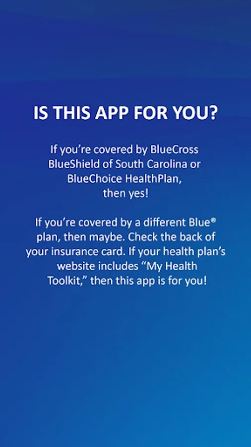 --If you are a member of BlueCross BlueShield of South Carolina or BlueChoice Health Plan, this app is for you.