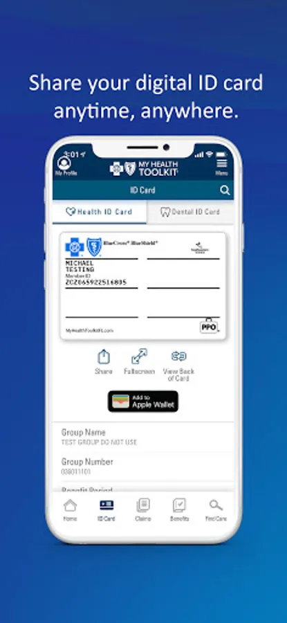 ID Card: Access your BlueCross ID card on the spot — you can even send it to your doctor.
