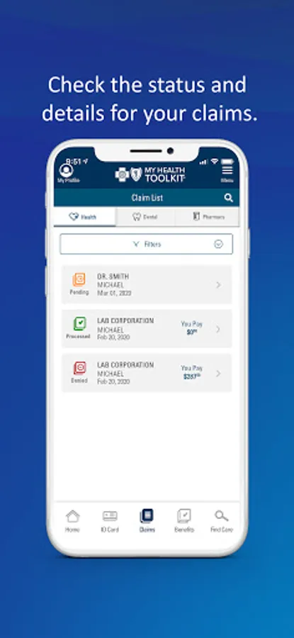 Claims: View the status of your claims in real-time and verify the amount you may owe for a service.