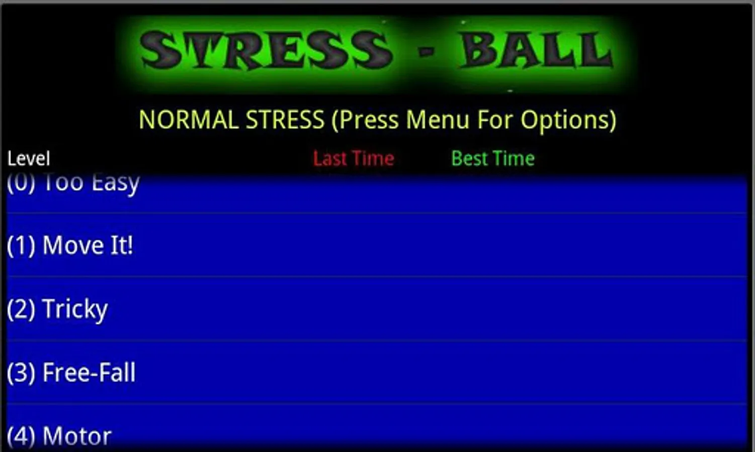 If you like accelerometer games, you love STRESS – BALL. Simply tilt your device to get the green ball to the green square. There are 28 different brain teaser levels and 3 difficulty settings for when you are ready for more of a challenge. This game incorporates 2D physics and has obstacles with different speeds to navigate around or use to complete the various levels. Play again to improve your time. No more dying and starting over, there are no traps or abyss to fall into. There are multiple level types and themes to keep you engaged. If you need help, there are level tips available to relieve some stress. I hope you enjoy playing STRESS – BALL as much as I did making it. This game was possible thanks to AndEngine. Enjoy!