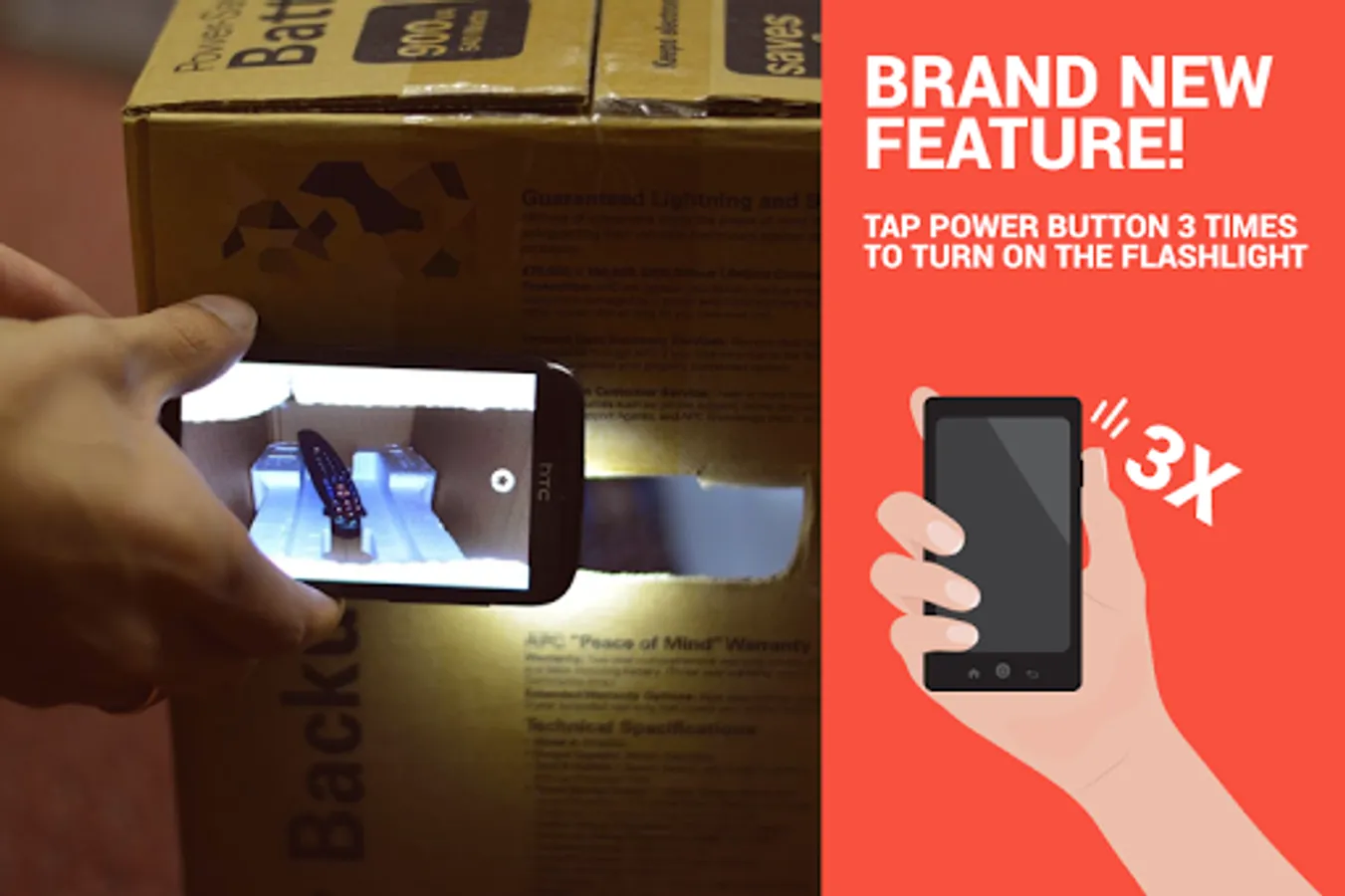 • Start flashlight by pressing phone's Power Button 3 times