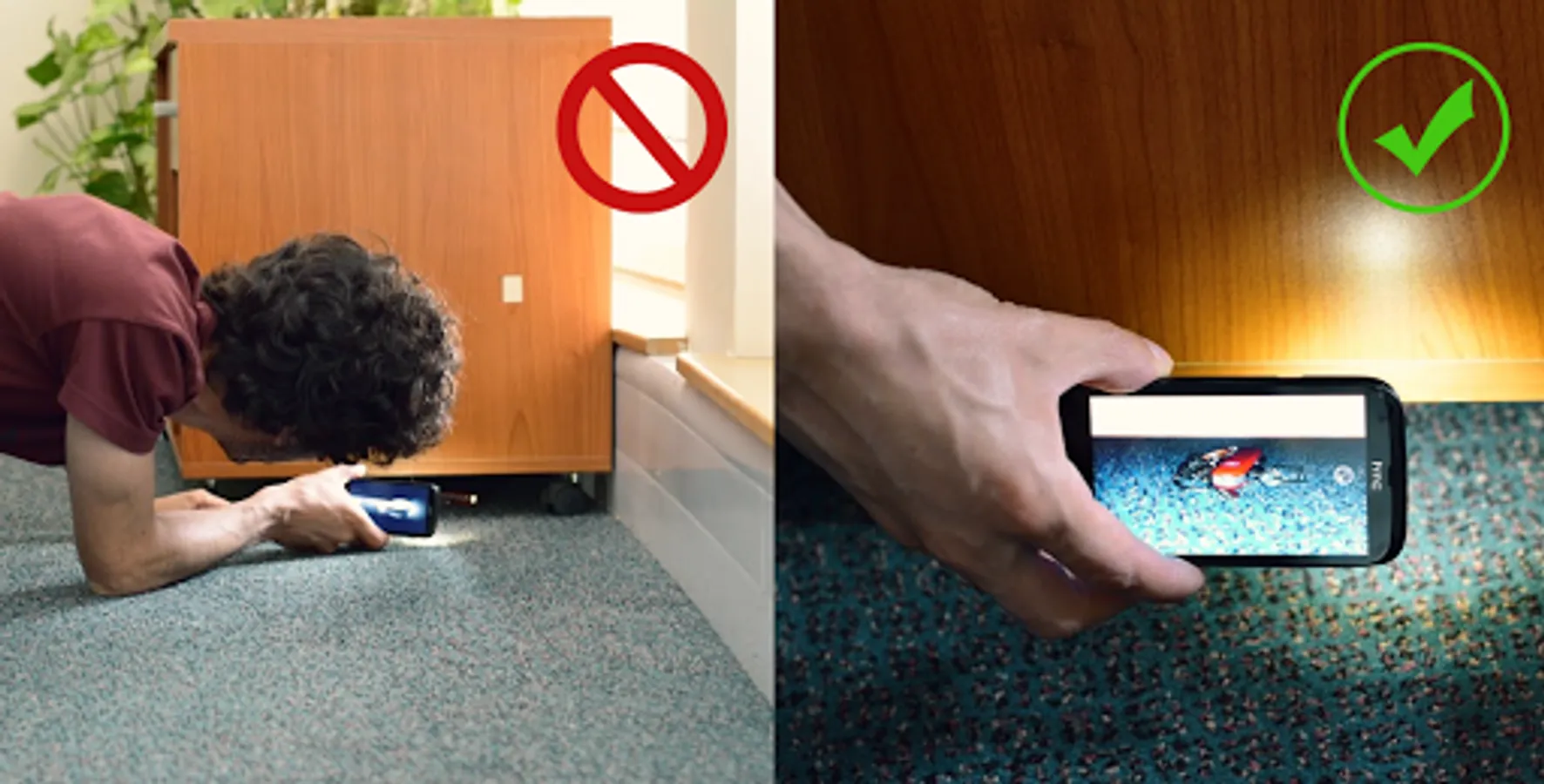 Simple and reliable flashlight with good design and handy feature. Press big button to turn torch on/off. Press small camera button to activate a back camera, it is a simple solution for a hardly approachable places.