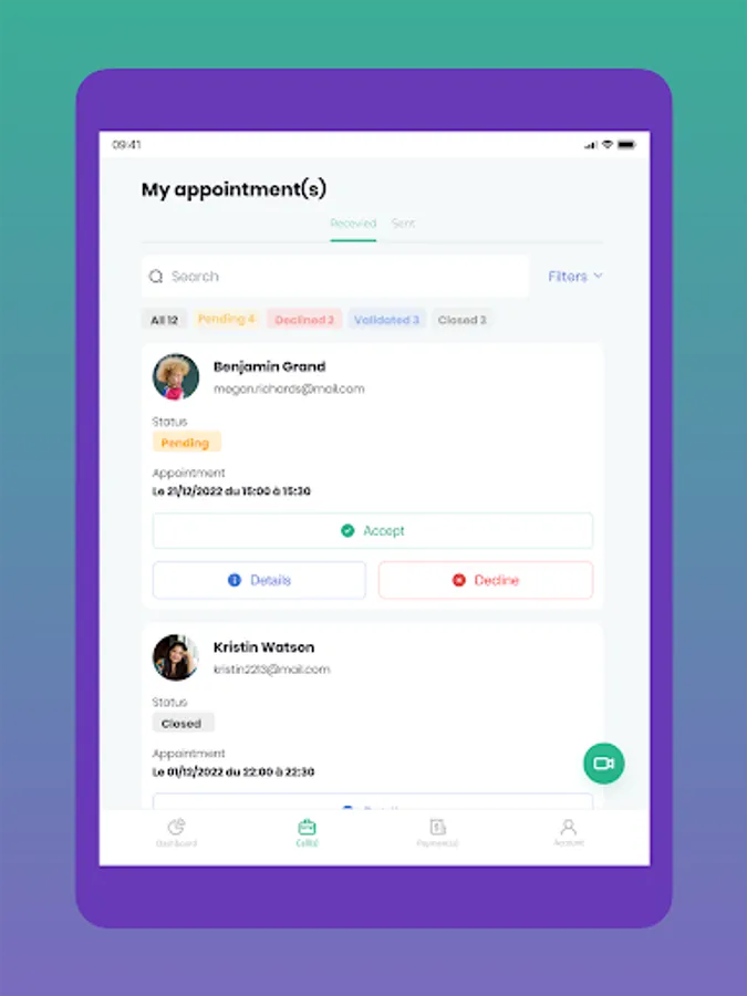 Organise your schedule online and generate income from remote support for your current clients or new prospects all over the world for € 121 per year and 20% of commission for each consultation. A simple, useful and practical process that makes your expertise available to all those who need it.