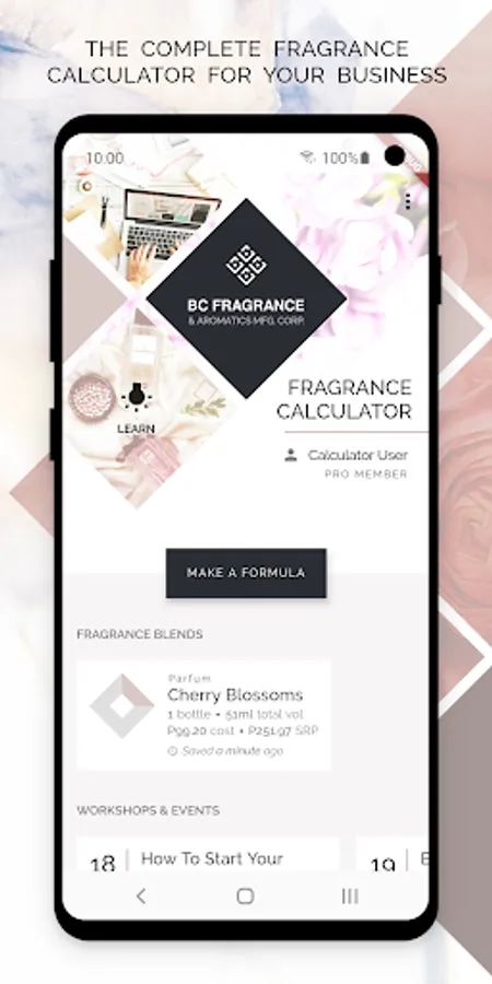 Plan out your product, record your formulas, and calculate how much of each ingredient you need to create the perfect scented product! Create formulations with multiple fragrances / essential oils in the Pro version that are saved with your profile / registered email address!