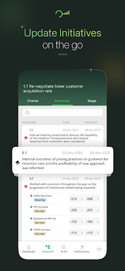 Rigorous Tracking. Provide updates on implementation progress against locked plans, and capture actions directly.