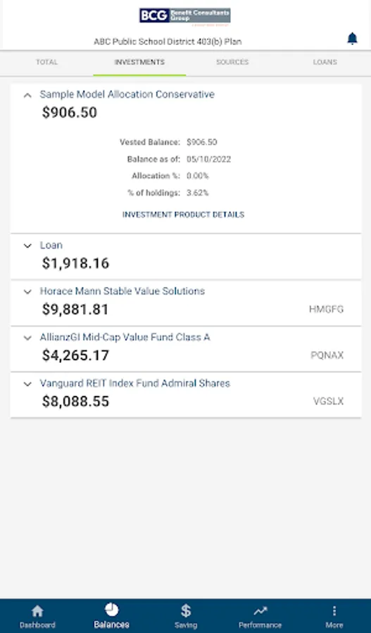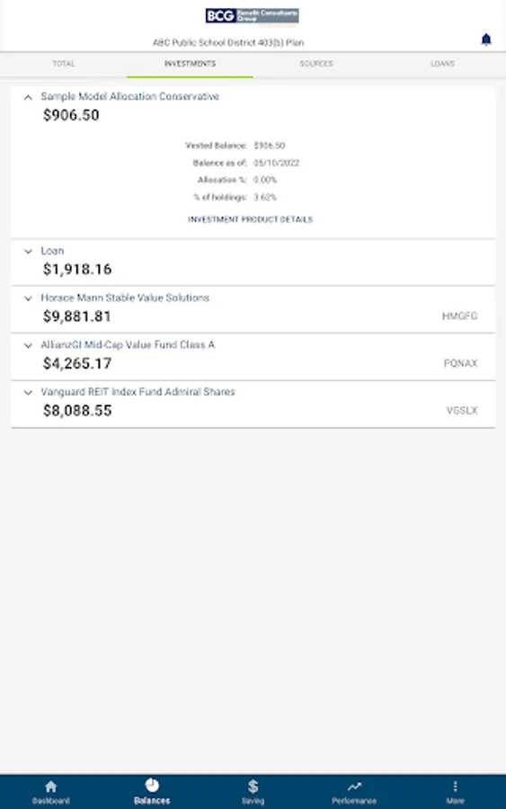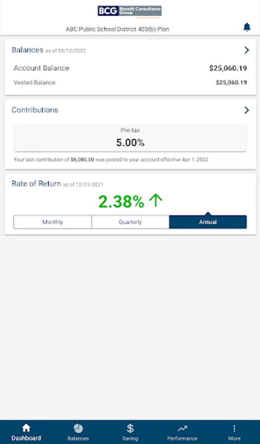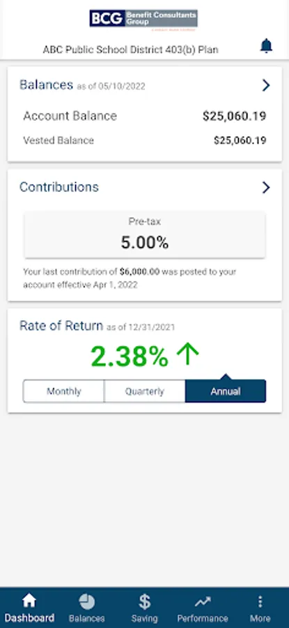 Participants in retirement plans serviced by Benefit Consultants Group use this app to access their account information anytime, anywhere on their mobile device.