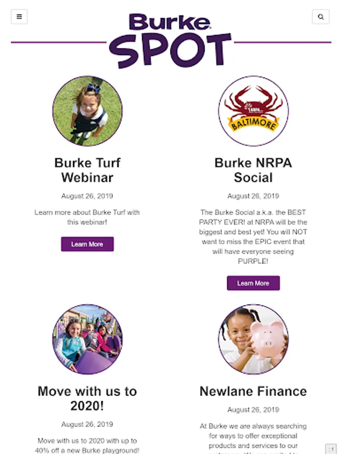 Burke Spot Messaging is an app designed for our on the go distributors and team members. It allows users to send and receive messages while in the field via push notifications from their phone as well as access documentation and contact information for our key team members as well as comment on Burke news. This app also allows you to use the mobile device's camera to see what some of our most popular playground configurations might look like at your park or school. The unique to the industry technology allows you to overlay the playground in the spot your thinking of building a playground and save the picture for future planning, or client and community presentations. The app is also a source for the latest Burke news and service bulletins.