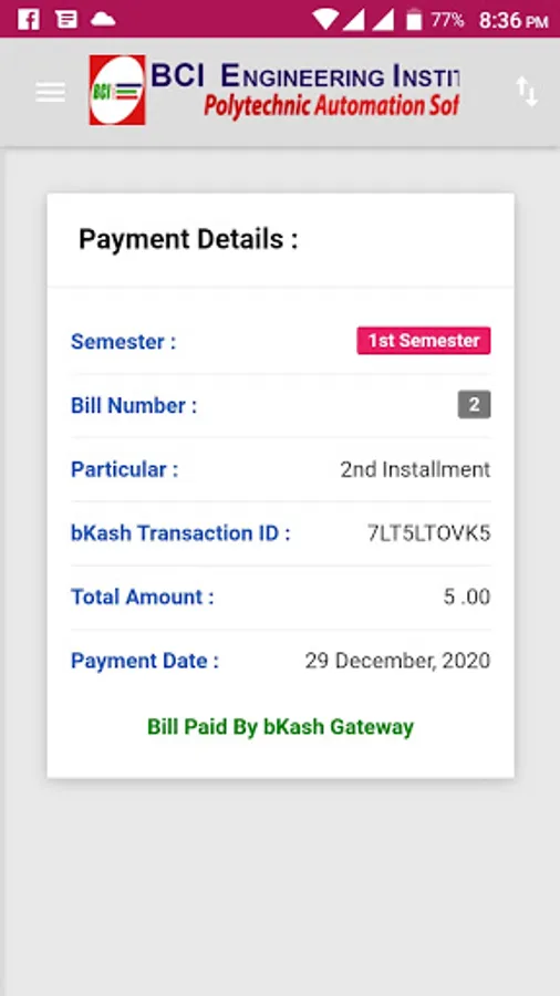 In this app, the student can view their profile, results, routine, attendance report, payment agreement, make a payment by (bKash, Rocket, Nagad), find bill number for mobile banking pay bill system (bKash, Rocket, Nagad), payment history and more.