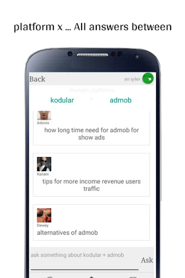 Platform X question-and-answer App where questions are asked and answered About 2 platforms.