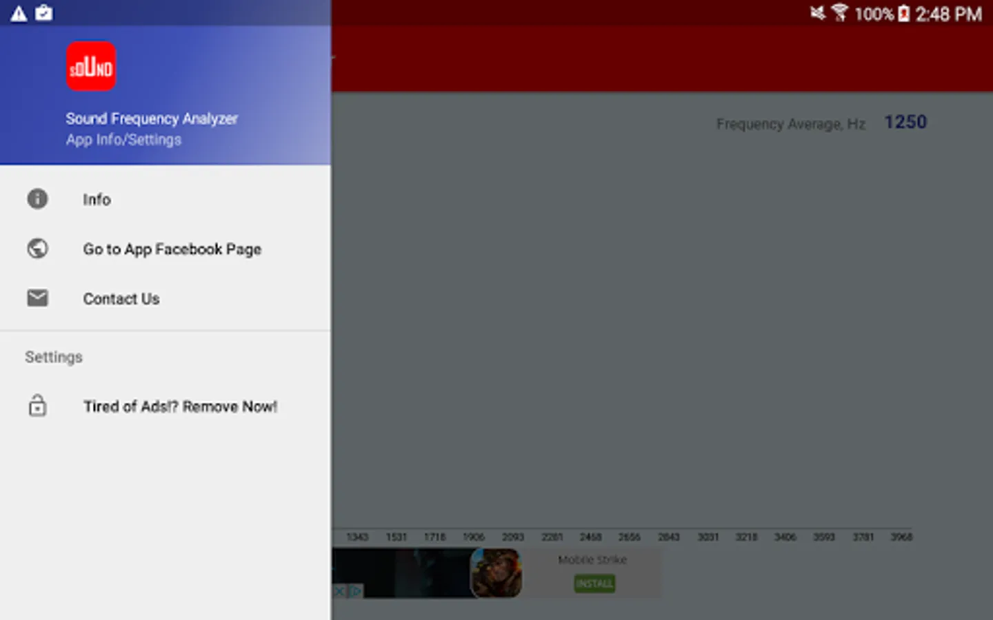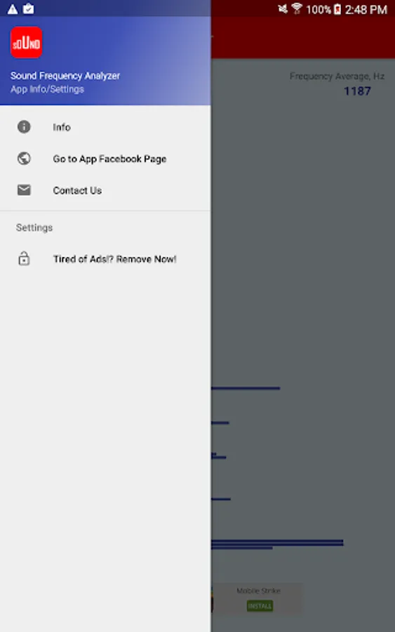 The Sound Frequency Analyzer Android app is completely free app, it only displays the commercial banner at the bottom of the screen to support the development.
