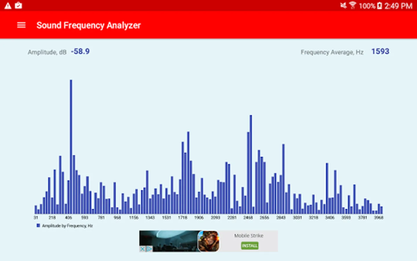 For example, while doing the real time sound measurement of the whole audio sound spectrum - the Sound Frequency Analyzer Android app allows you to do the audio spectrum analysis of low level or high level frequencies.