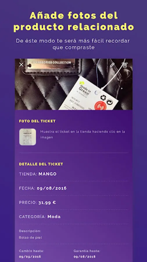Forget about carrying briefcase full of poorly organized tickets. Saved! It lets you save them in the cloud, organize them by categories and add related photos to each ticket products.