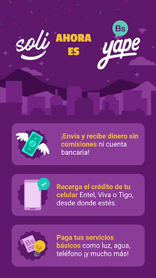 To use Yape you do not need to be a customer or have an account at Banco de Crédito de Bolivia, or at any bank. Soli Pagos BCP Mobile Wallet is now Yape Bolivia!