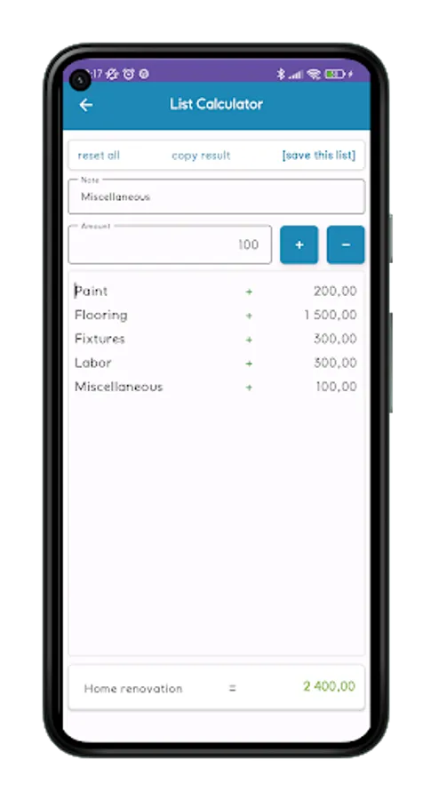 Versatile Usage: ListCalcPro adapts to various scenarios. Whether you're a student dealing with mathematical computations, a professional managing budgets, or a traveler tracking expenses, this app accommodates your needs.