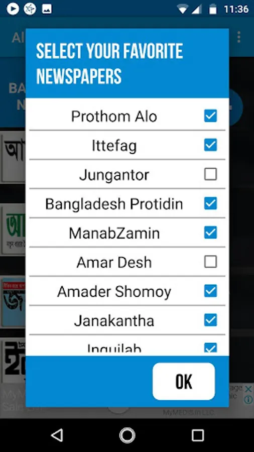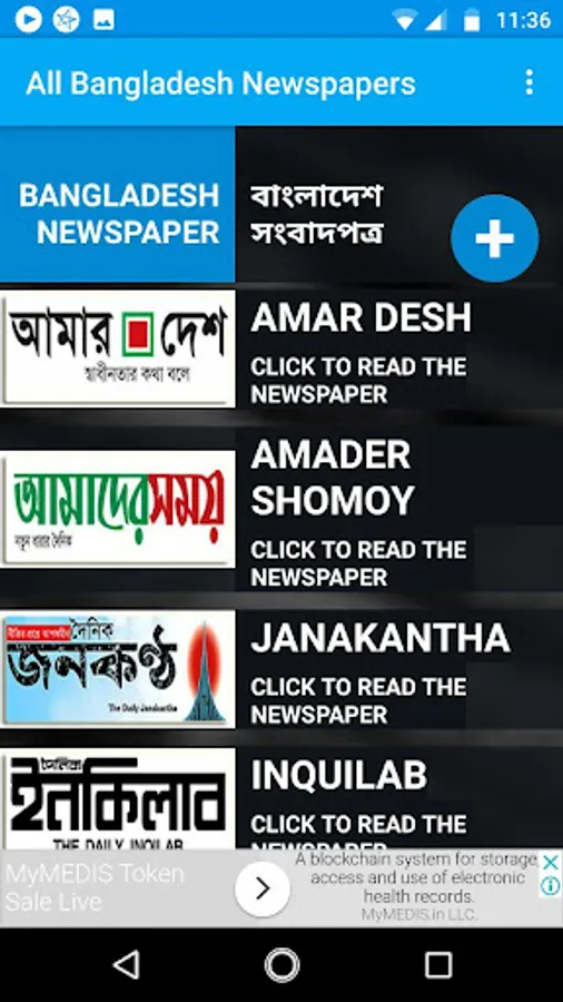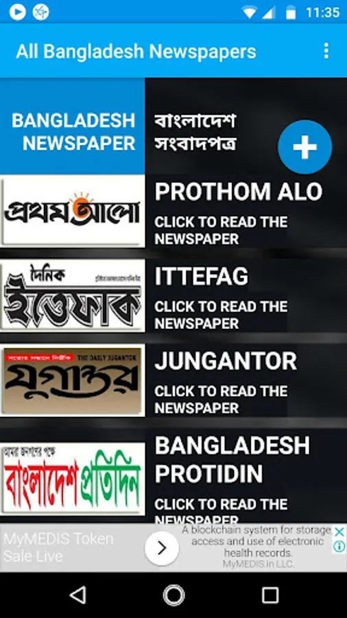 Using the Plus Symbol you can choose the Bangladesh newspaper you want and just read only those Bangladesh newspapers. Later if you want any other Bangladesh newspaper you can still choose the Bangladesh newspapers you want from the list