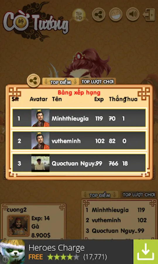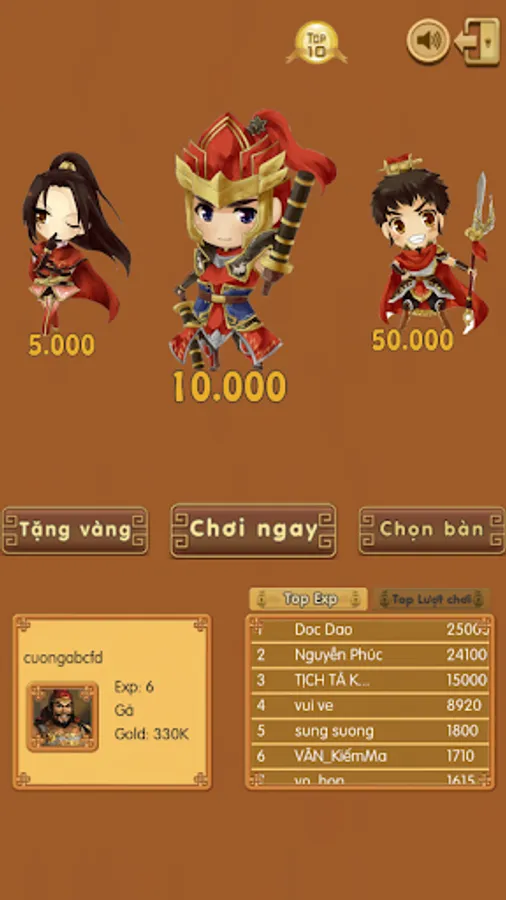 ✔ Receive gold by liking fan page at www.fb.com/gamecotuongonline