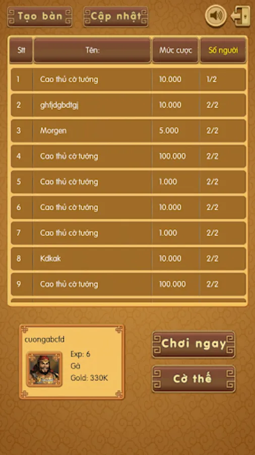 Let's join the Fan page at www.fb.com/gamecotuongonline to update more information. You can also talk with more than 3500 friends here.