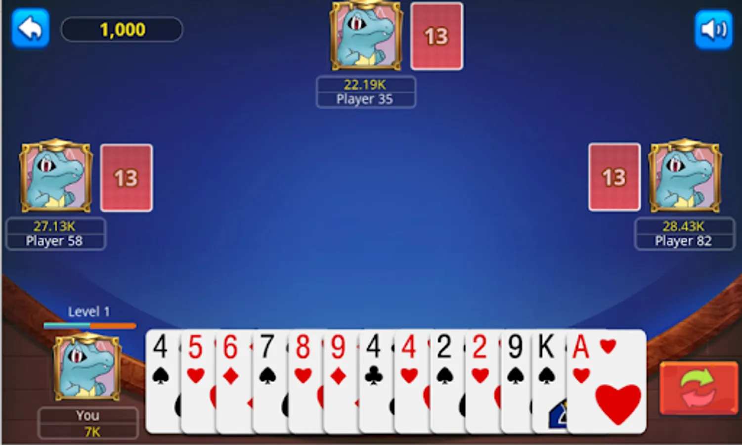 Thirteen is typically played with a standard 52-card deck, though jokers can be added as wild cards if desired. The ranking of cards from highest to lowest is 2-A-K-Q-J-10-9-8-7-6-5-4-3. Suits do not matter in this game.