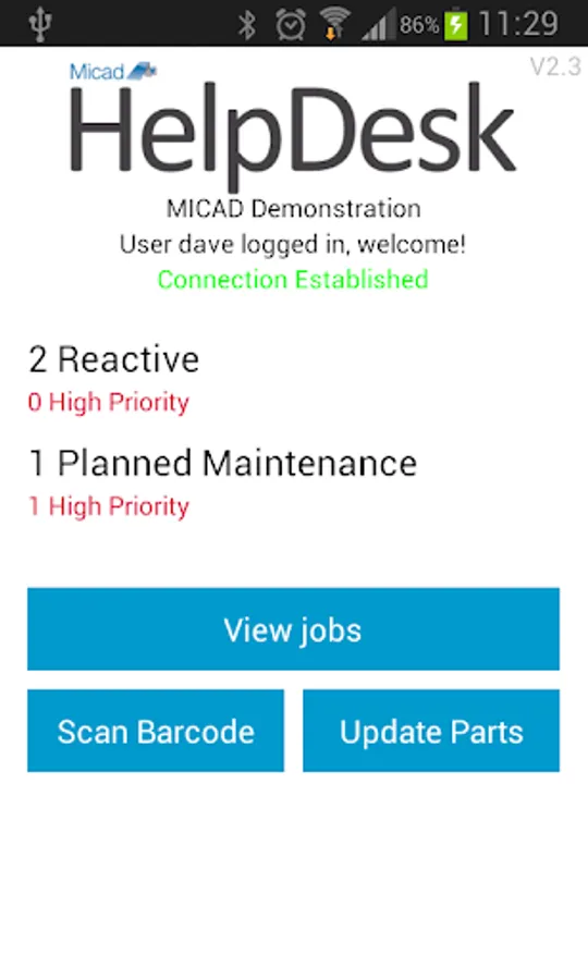 Reactive and Soft Services Helpdesk companion app for Micad Helpdesk